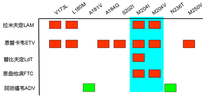 图,NAs耐药位点,均与204位的YIDD与YVDD突变相关